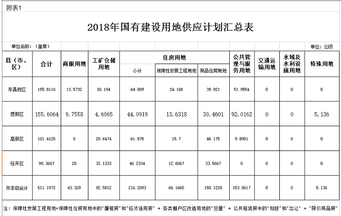 (一)供应总量。2018年度国有建设用地供应总量控制在511.1972公顷左右。