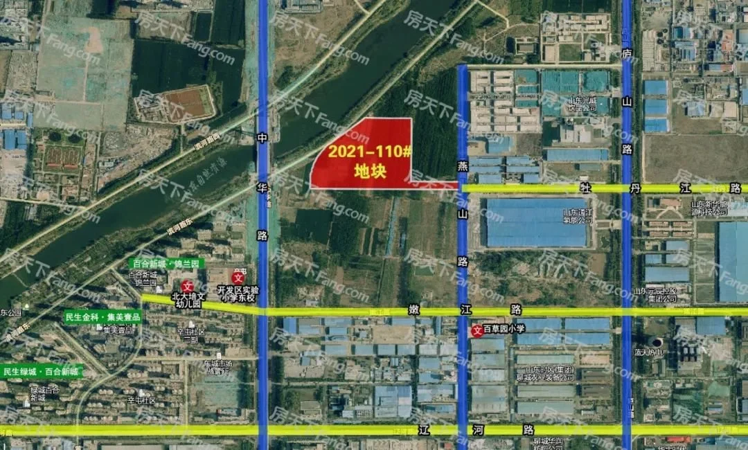 从地块位置来看,中华路以西分布有民生绿城·百合新城、民生金科·集美壹品、辛屯社区等多个大型住区,居住氛围浓厚;紧邻中华路与滨河大道,中华路跨徒骇河大桥现已通车,交通畅达;周边分布有北大培文幼儿园、开发区实验小学东校、百草园小学等,以及规划中的开发区第二实验中学,教育资源丰富。