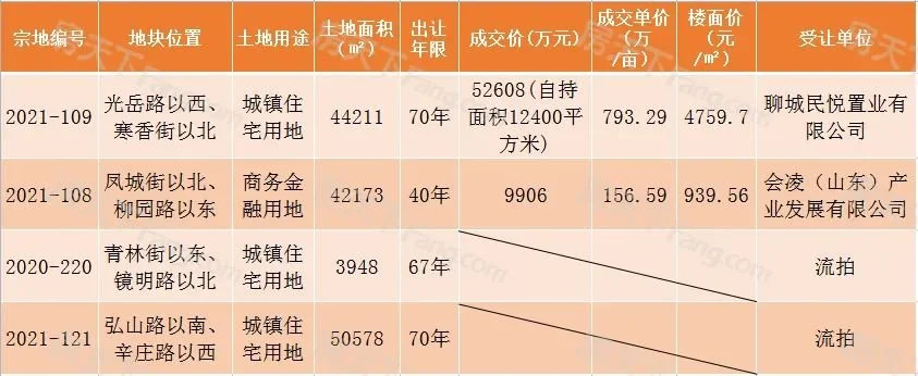 10月20日,城区4宗在聊城市网站公开竞价,其中2宗成功出让,2块流拍!