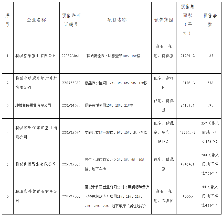 民生·城市玖玺北区2#、3#、6#、10#楼、地下车库取得预售许可证,预售范围为、储藏室,为42454.8㎡,预售套数为284套(非人防地下车位708个)。