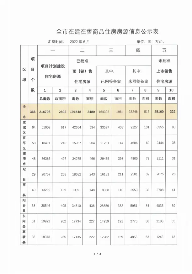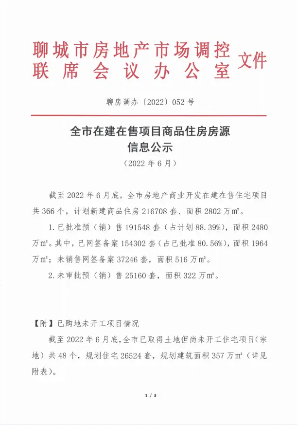 截至2022年6月底,全市开发在建项目共366个,计划新建216708套、面积2802万m'。