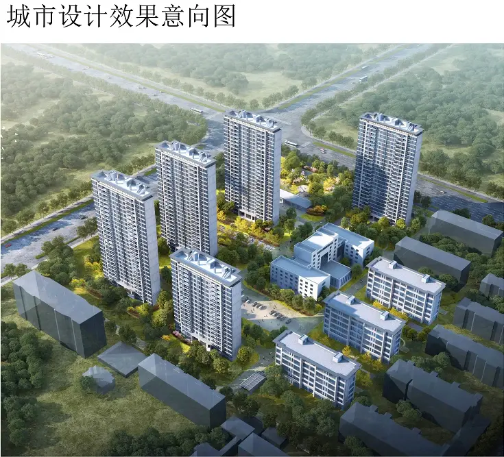 共规划建设8栋座,其中4栋为26层高层,1栋18层小高层及3栋6层,社区中央保留一栋现存建筑,为商业、、文化活动站等使用。