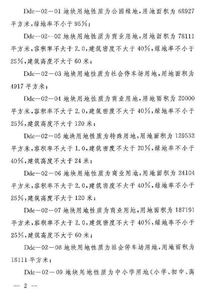 ddc-02-02 用地性质为二类城镇,用地面积为7.81公顷,容积率不大于2.5,不大于25%,不小于35%,建筑高度不大于80米;