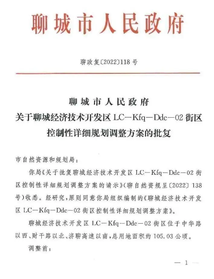 你局《关于批复聊城经济技术开发区lc-kfq-ddc-02街区控制性详细规划调整方案的请示》(聊自然资规呈(2022)138号)收悉。经研究,原则同意你局组织编制的《聊城经济技术开发区lc-kfq-ddc-02街区控制性详细规划调整方案》。