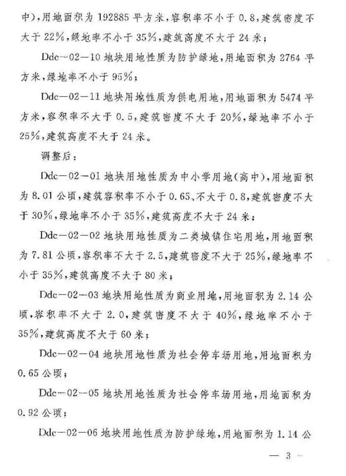 ddc-02-01用地性质为中小学用地(高中),用地面积为 8.01 公顷,建筑容积率不小于0.65、不大于0.8,不大于30%,不小于35%,建筑高度不大于24米;