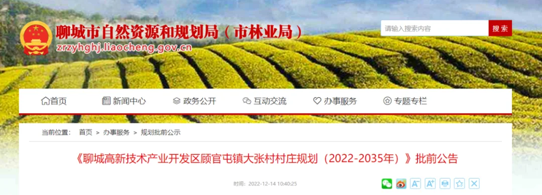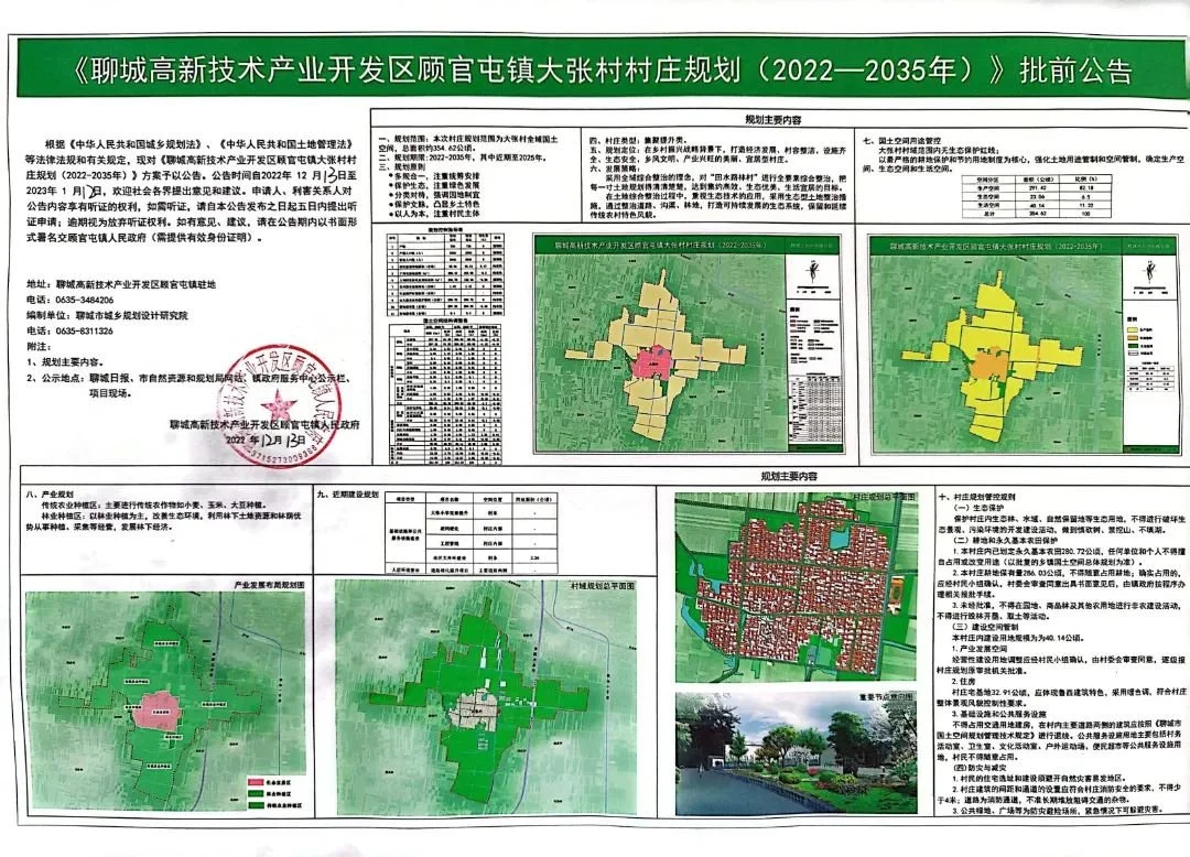 《聊城顾官屯镇大张村村庄规划(2022-2035年)》批前公告