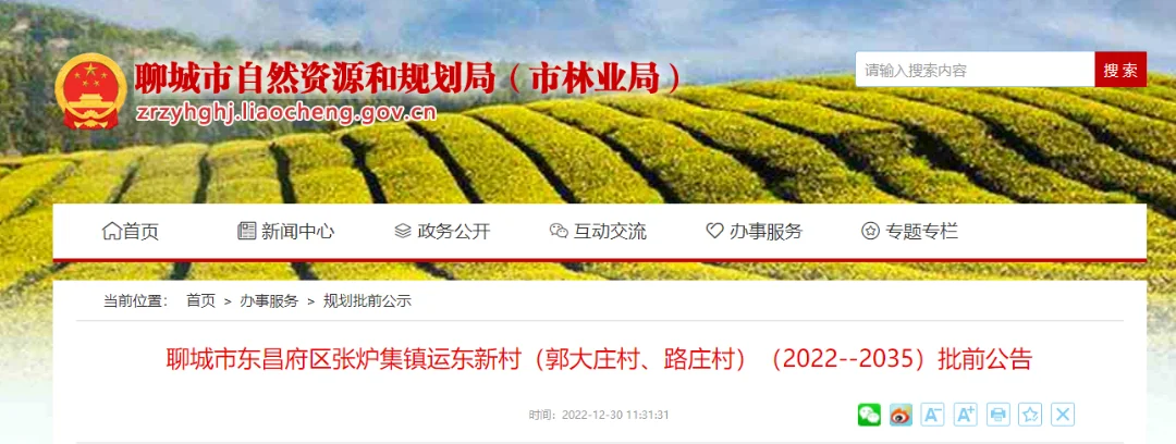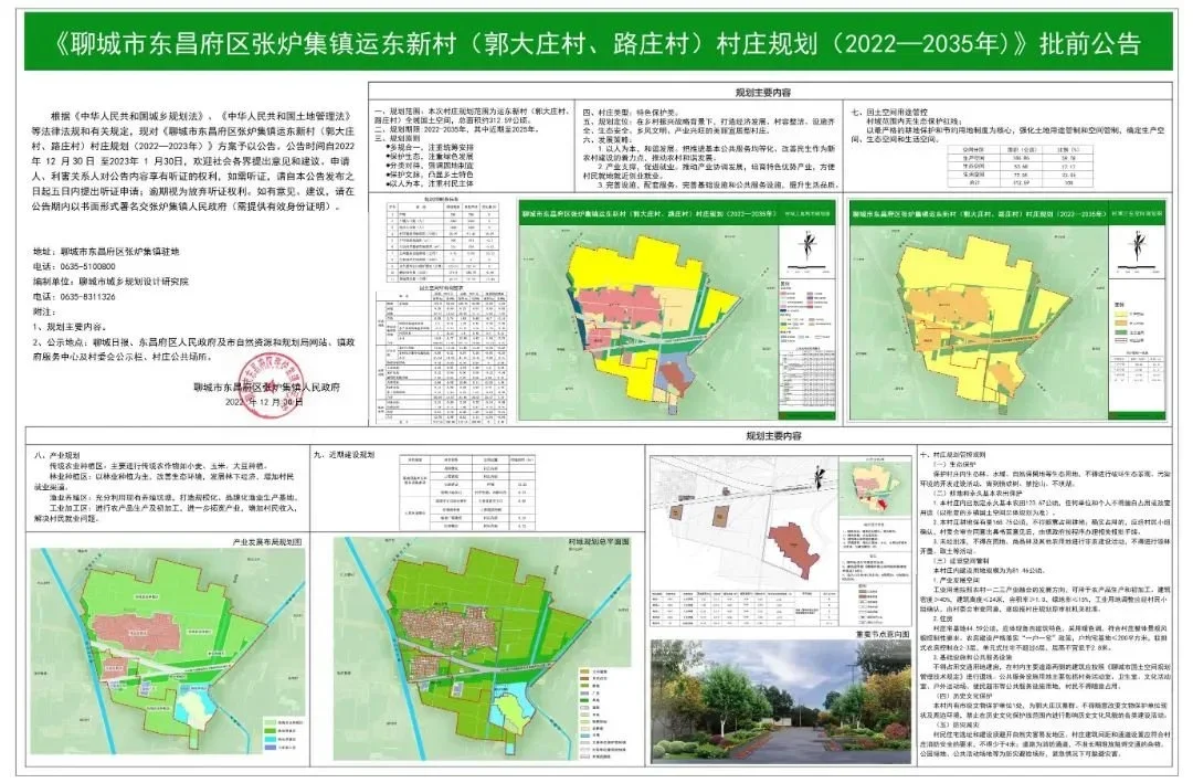聊城市东昌府区张炉集镇运东新村(郭大庄村、路庄村)(2022--2035)批前公告