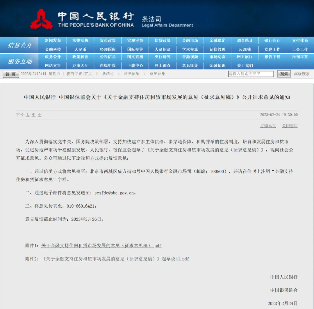 通知提到,为支持加快建立多主体供给、多渠道保障、租购并举的,培育和发展住房,促进平稳健康发展,人民银行、银保监会起草了《关于金融支持市场发展的意见(征求意见稿)》,现向社会公开征求意见。