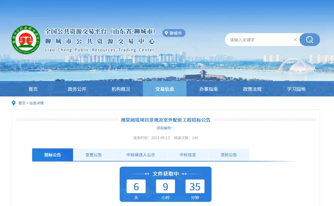 本项目观棠阅境项目景观及室外工程已由相关部门批准建设,建设资金来自,人为聊城泰岳置业有限公司。招标代理为山东正信招标有限责任公司,项目已具备招标条件,现对该项目的施工进行公开招标,有关事项公告如下:
