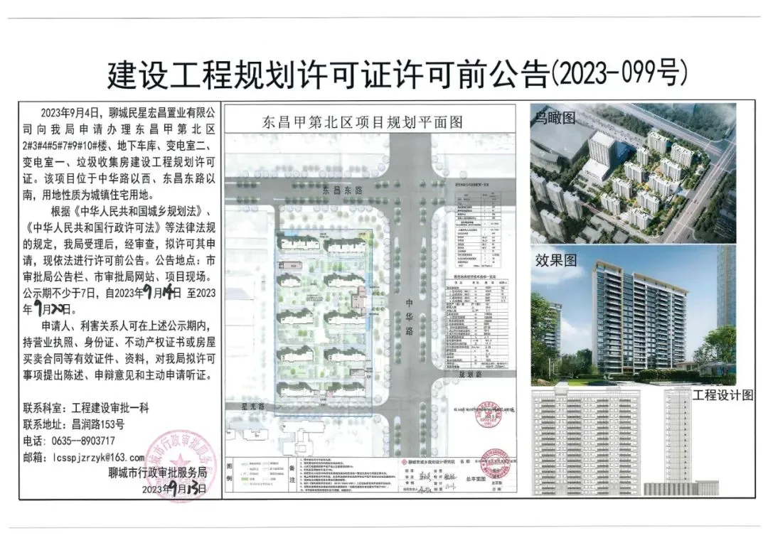 关于聊城民星宏昌置业有限公司的东昌甲第北区-2#3#4#5#7#9#10#楼、变电室一、二、地下车库等的许可前公告