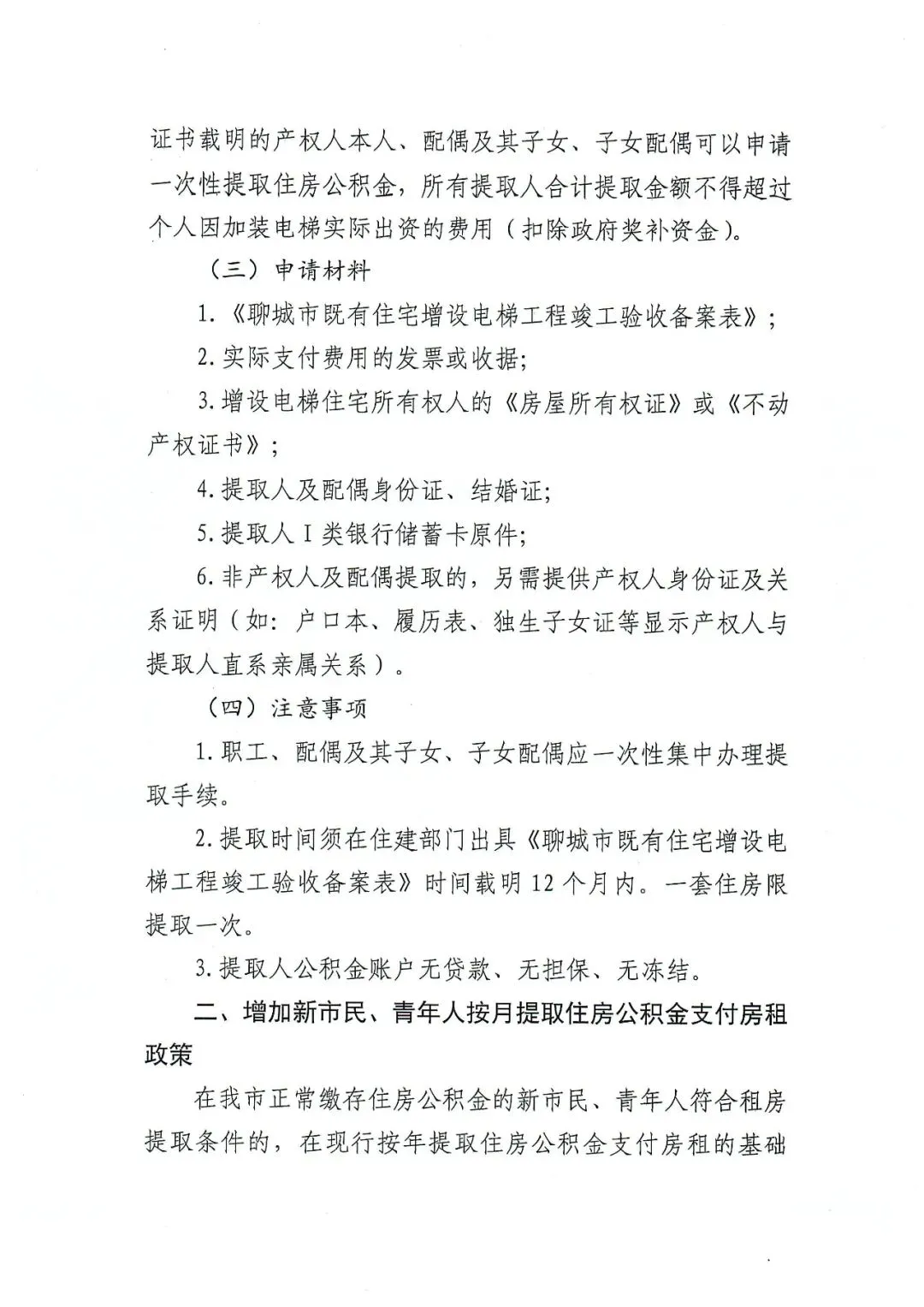 2.提取时间须在住建部门出具《聊城市既有增设电梯工程备案表》时间载明12个月内。一套住房限提取一次。