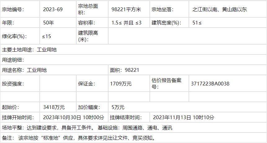 四、本次的详细资料和具体要求,见挂牌出让文件。申请人可于 2023年10月09日 至 2023年11月10日 到 聊城市网站(http://ggzyjy.liaocheng.gov.cn)“电子交易系统-新”土地交易入口 获取 挂牌出让 文件。