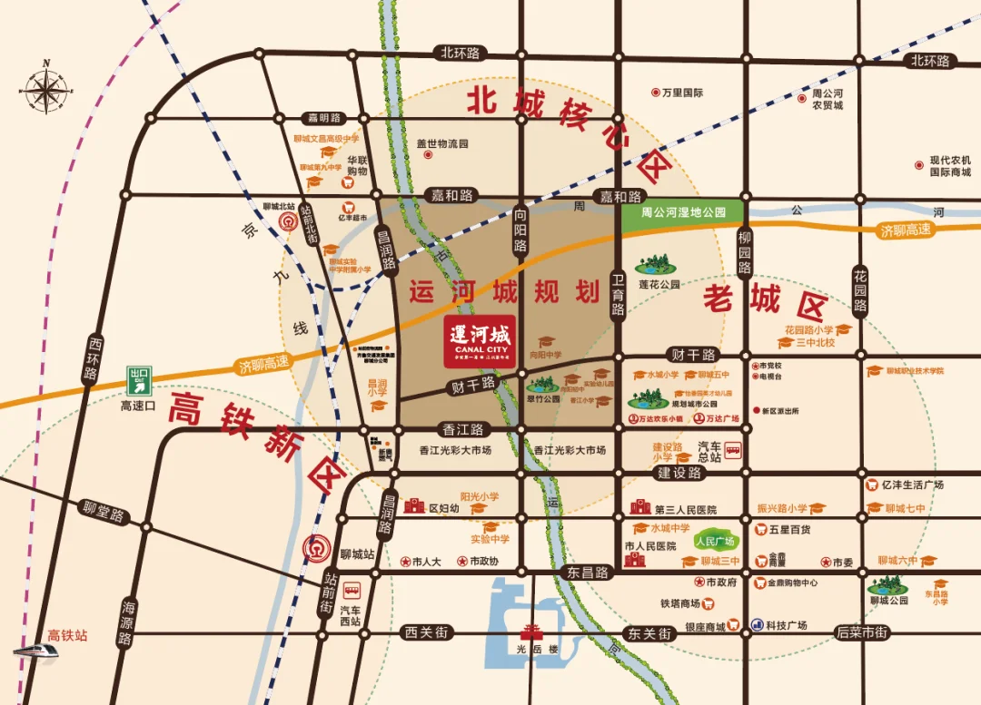 项目位居财干路北城区城市中轴,近邻济聊高速口!共同搭建城市快车道。《聊城市中心城区新区片区控制性详细规划(批后公布稿)》指出将在新区片区构建“双心四区、三轴三带”的总体空间布局结构。炙手可热的板块价值将区域发展红利尽收囊中。