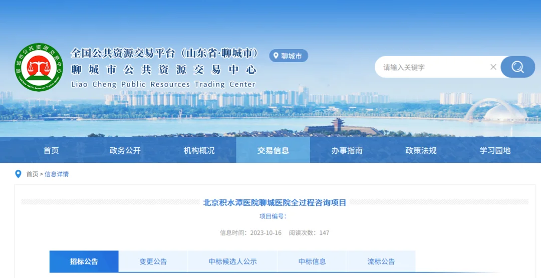 北京积水潭医院聊城医院全过程咨询项目已经通过相关部门批准立项,人为聊城财瑞建设发展有限公司,资金为财政资金,项目已具备招标条件,现对该项目全过程工程咨询服务项目进行公开招标,有关事项公告如下: