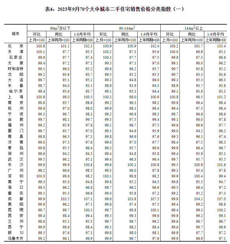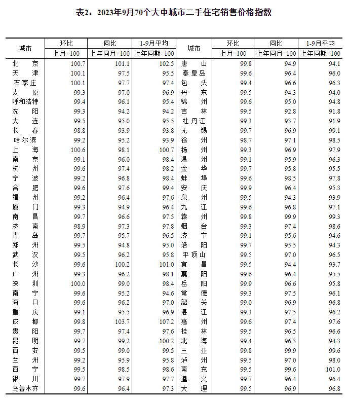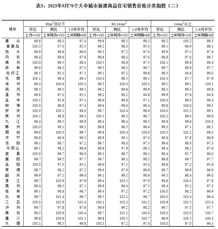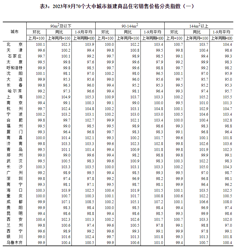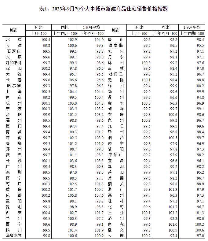 2023年9月份70个大中城市商品住宅销售价格变动情况-c7娱乐平台