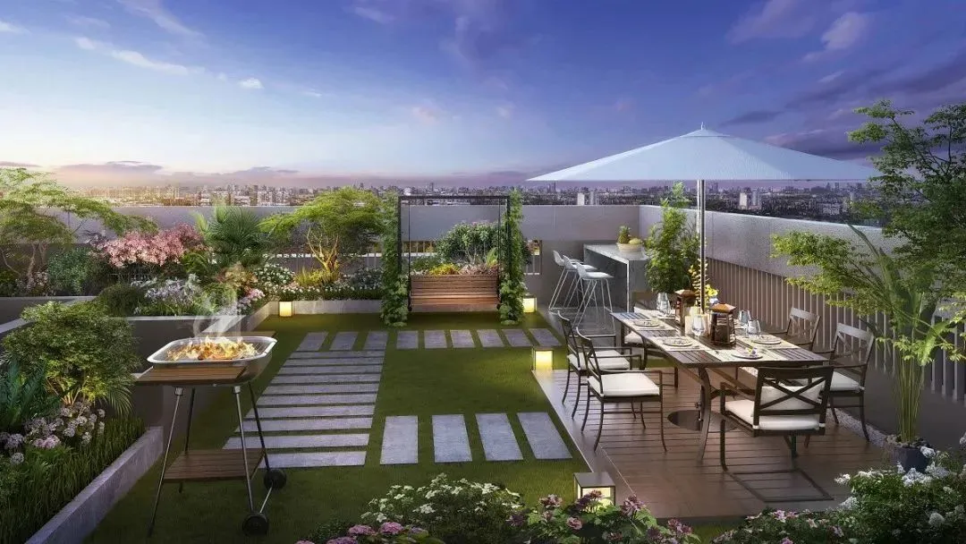 在露台上,可以放个摇椅,品茶读书,偷得浮生半日闲。也可以安置几个健身器材,出即享运动休闲时光;或者在精心打造的屋顶花园,闲时邀三五好友聚会谈天,共赏月明星稀,成就一方露台上的社交雅境。