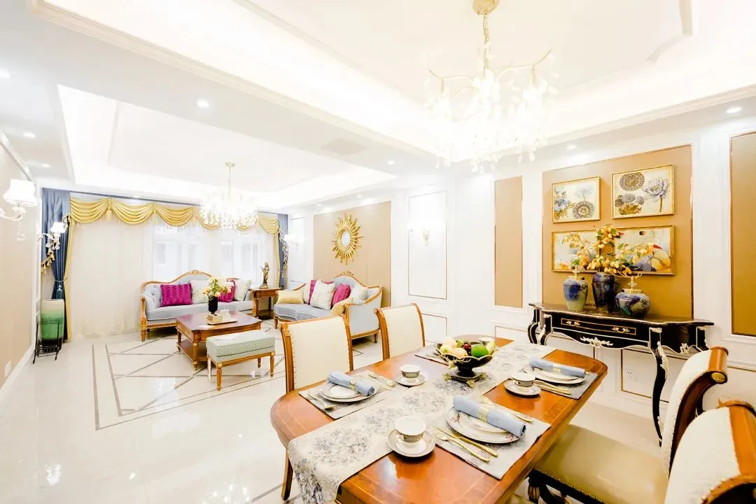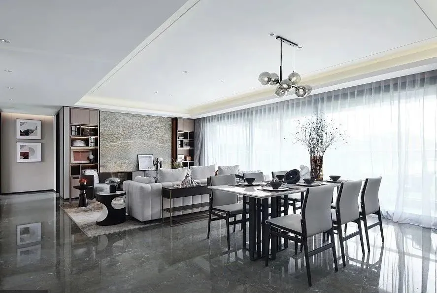 奢阔宽厅,餐客厅一体化的设计,对于好客热情的主人来说,家宴接待,亲朋好友小聚家中,谈笑风生,论道风云,觥筹交错间,流露不凡气度。
