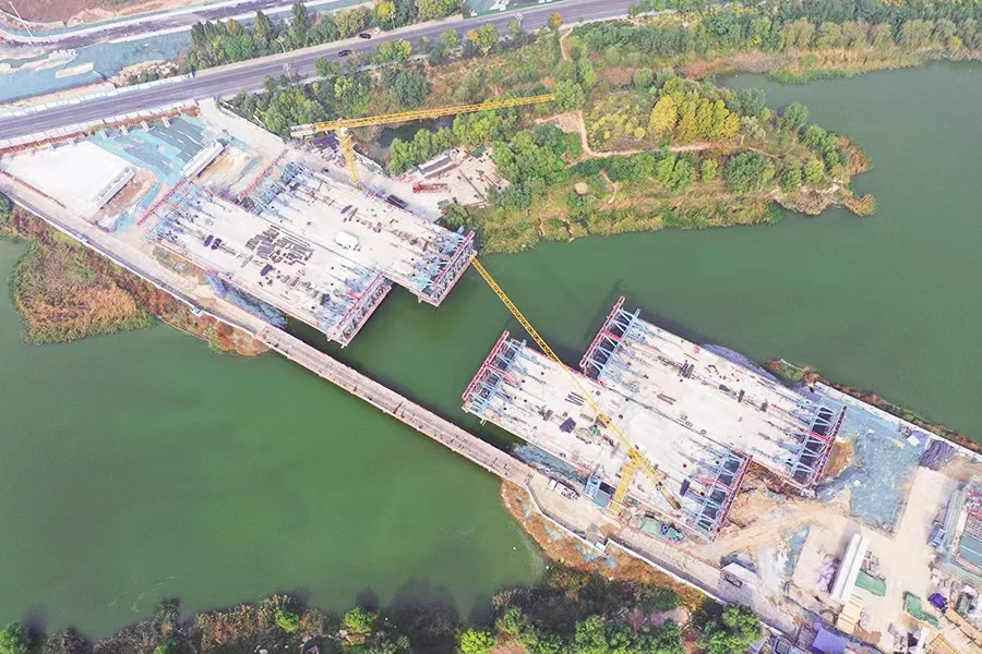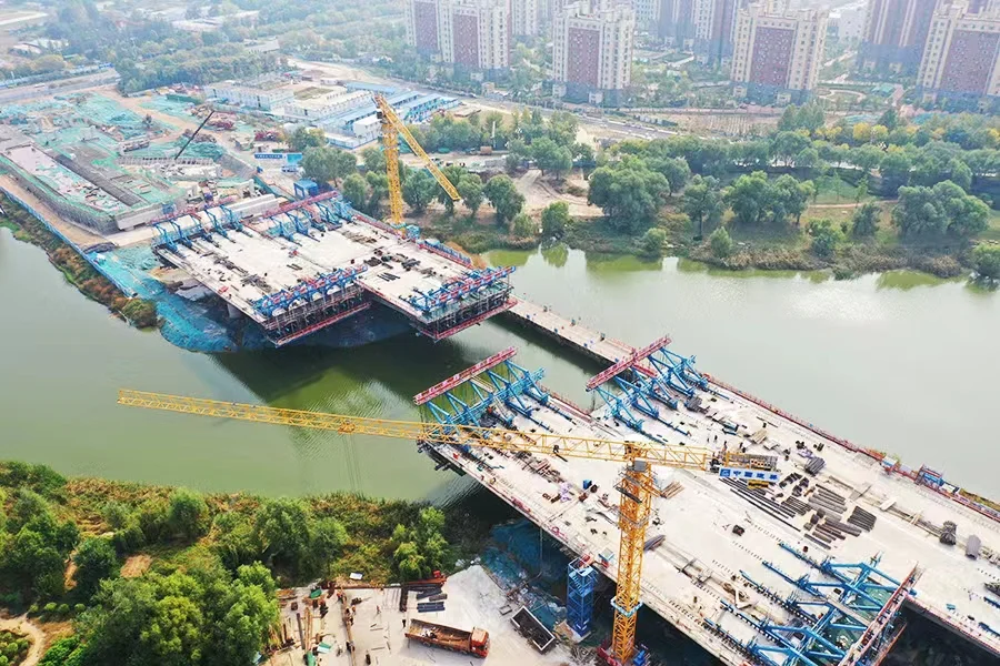 10月18日,金秋时节,松桂大街徒骇河桥项目建设现场机器轰鸣,一派繁忙建设景象。现场施工人员抢抓有利时机,全力推进工程进度。