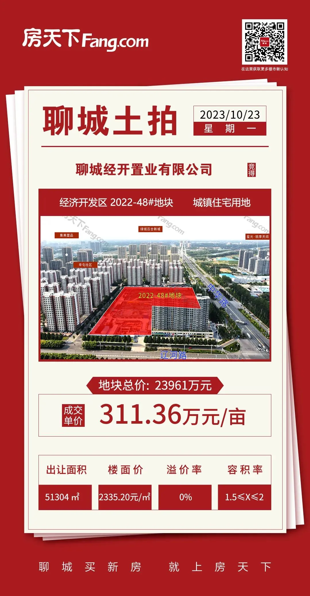 10月23日,一块于聊城市网站集中竞价,其该宗为城镇。成交总金额23961万元!