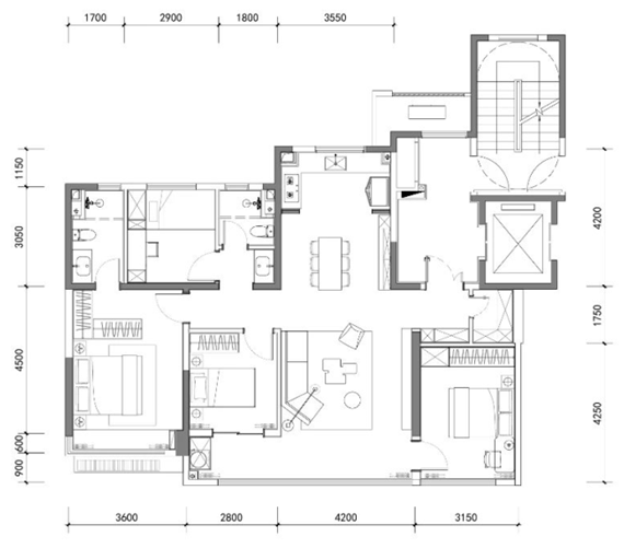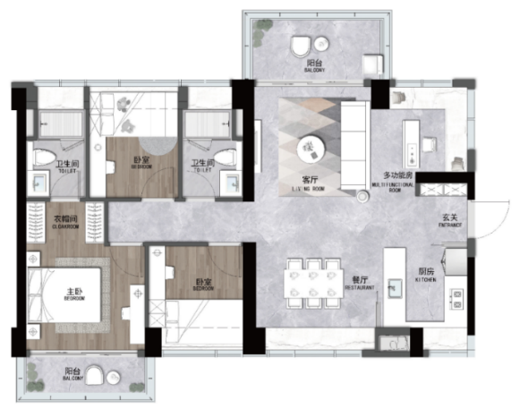 整体户型动静分区,公私空间互不干扰,私密性强。