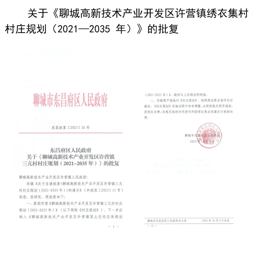 你镇《关于呈请批复<聊城许营镇三亢村村庄规划(2021-2035年)>的请示》(许政发〔2023]11号)收悉。经研究,现批复如下: