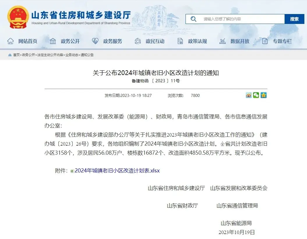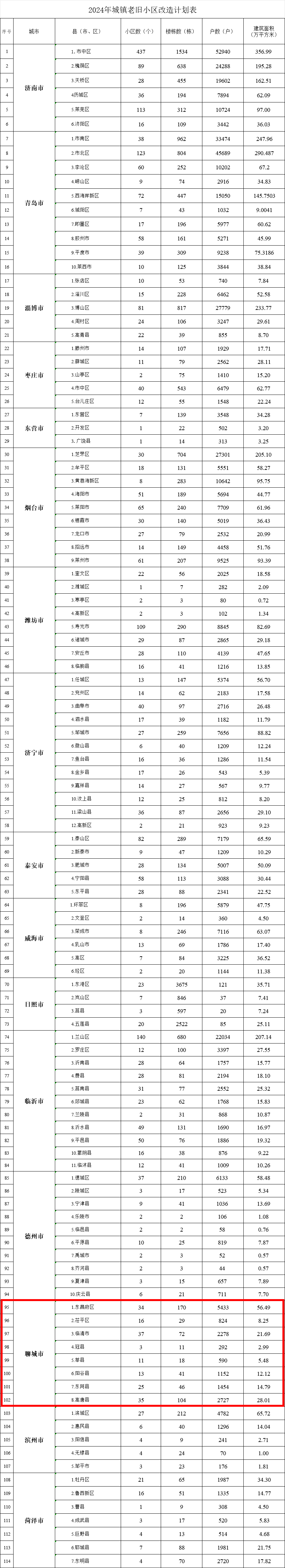 根据计划,聊城市东昌府区、茌平区、临清市、冠县、莘县、阳谷县、东阿县、高唐县8个县(市、区)涉及174个小区,共改造491栋、14750户。