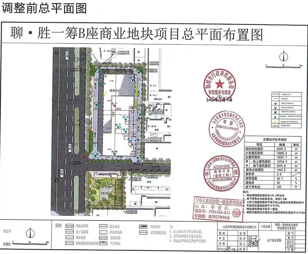 2023年10月17日,山东国兴城市更新有限公司因规划调整,向我局申请聊·胜一筹b座项目总平面布置图及变更,该项目位于柳园路东,育新街南,规划用地性质为服务业设施用地。