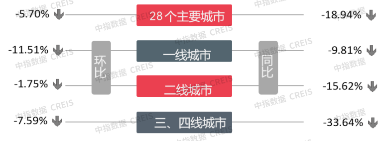 ▍二三:二三四线城市同环比均下降,跌幅扩大