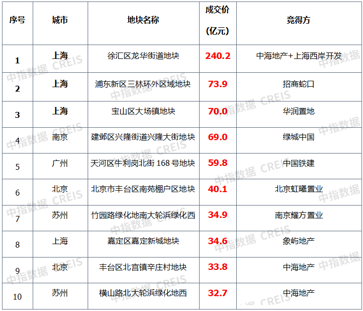 榜单总额同比增近四成,入榜门槛升至32.7亿,上海一城占据榜单四席,其徐汇区龙华街道宅地以240.2亿居首。