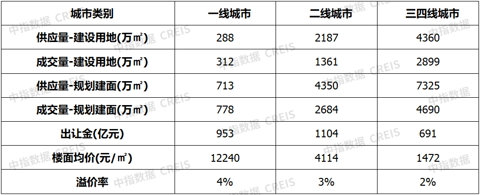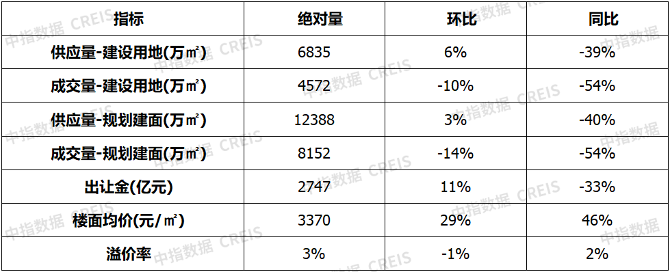 出让金总额同比增近五成,成交同比增逾七成,成交量上升一成;供求同比下滑,成交量降逾五成,出让金总额降近四成;三供应量同比走低,成交均价增近半成,出让金总额降幅近半有逾。