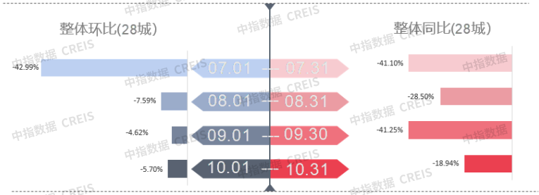 ▍交易:10月楼市整体同环比均下降,环比降幅显著