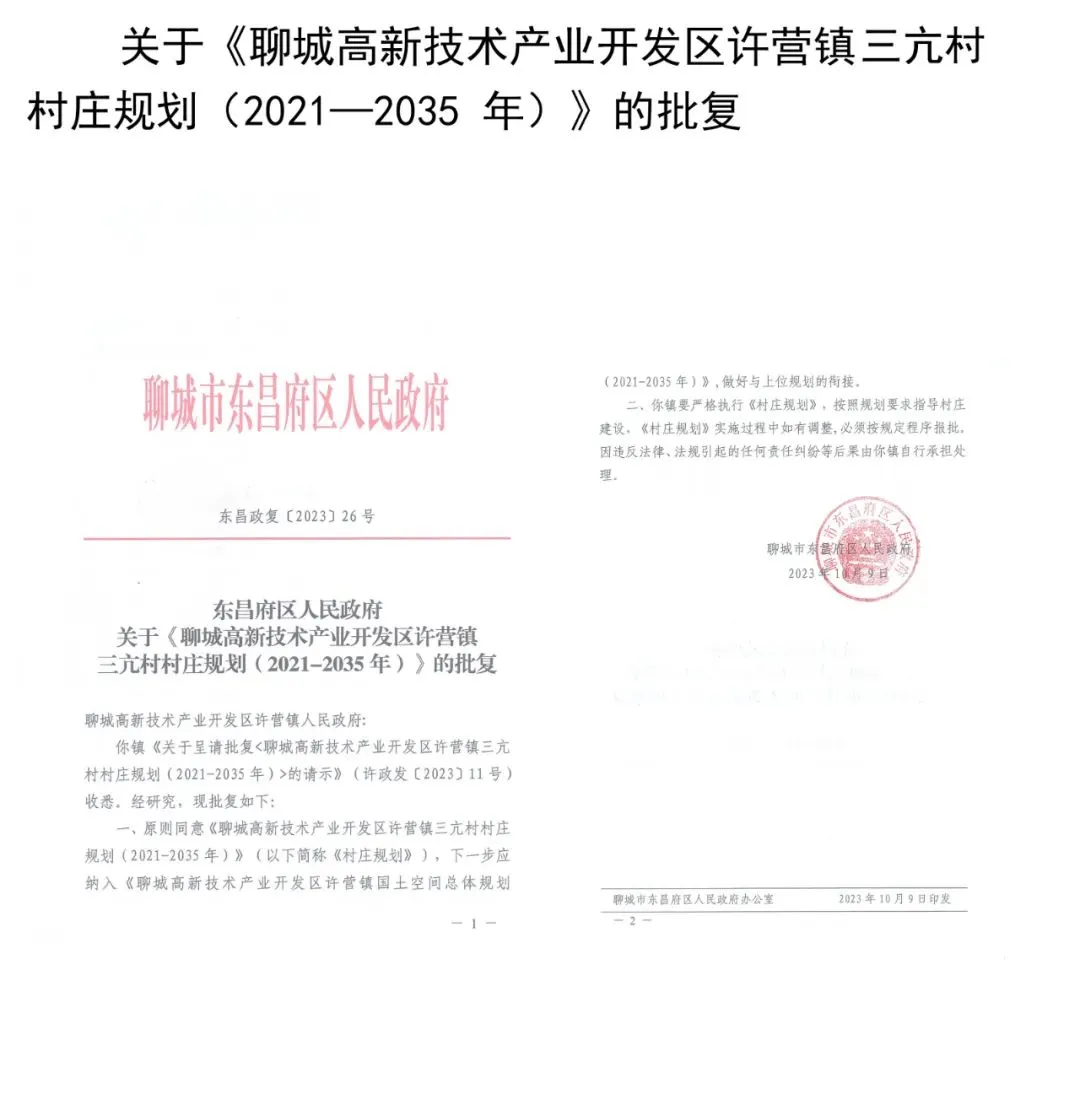 聊城许营镇三亢村村庄规划(2021-2035 )批后公告