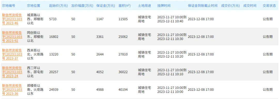近日,聊城市公共资源交易网挂出5宗,均为城镇。据了解,此次截止时间为2023年12月11日。