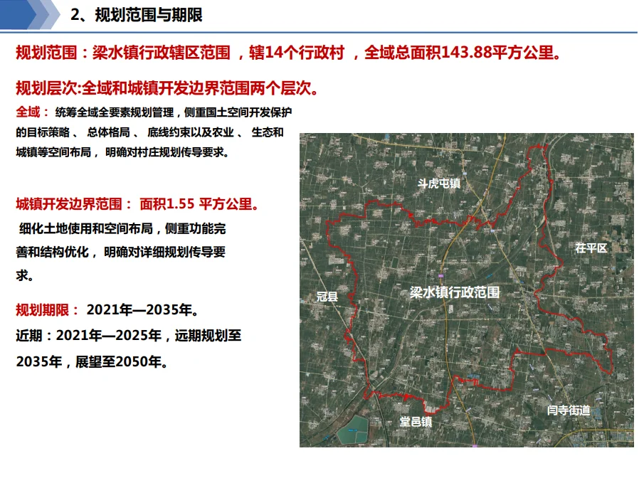 根据《中共中央国务院关于建立国土空间规划体系并监督实施的若干意见》,为贯彻落实文件精神,按照国家统一要求,结合各镇(街)实际,我区开展了《聊城市东昌府区梁水镇镇国土空间规划(2021—2035年)》、(以下简称《规划》)的编制工作。