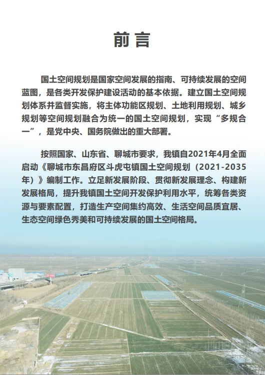 根据《中共中央国务院关于建立国土空间规划体系并监督实施的若干意见》,为贯彻落实文件精神,按照国家统一要求,结合各镇(街)实际,我区开展了《聊城市东昌府区斗虎屯镇国土空间规划(2021—2035年)》(以下简称《规划》)的编制工作。