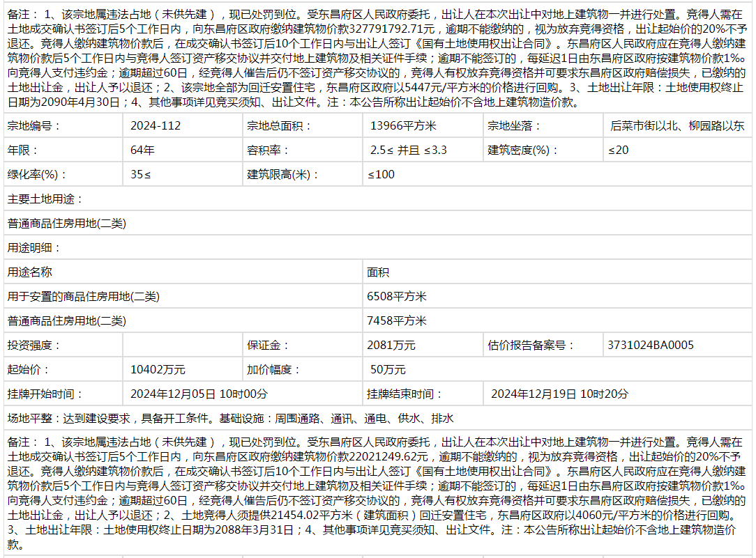(五)公告发布后,对实施未供先建等违法用地行为或前期未供先建行为已经依法处置又进行违法建设的竞买者取消竞买资格,不予退还。欢迎社会各界监督举报。